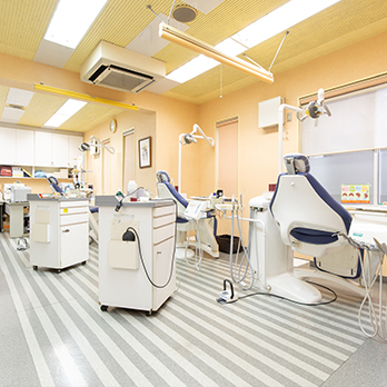 セファログラムなど精密に診断していくための設備機器も導入。矯正歯科は非常勤の矯正歯科医師と連携して行っている。駐車場あり。